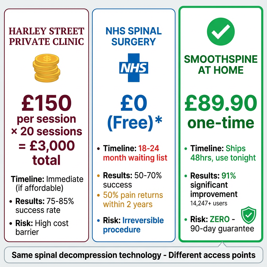 I built SmoothSpine to the same standards as the £100,000 clinical tables at Harley Street—manufactured by the same facility that produces NHS hospital equipment.